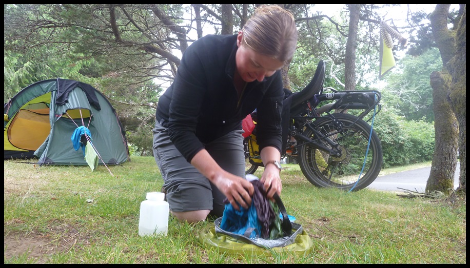 Maintenant, je suis l’assistante personnelle du Responsable d’Expédition (Fred) et je me suis spécialisée dans le lavage. Eh oui, après le café et les agrafeuses, je suis passée à un univers complètement différent. Je m’occupe essentiellement du lavage de vêtements et de la vaisselle. Au début du voyage, Fred m’avait donné le poste de Responsable anti-vol, mais ce job n’était pas fait pour moi, trop contraignant et j’oubliais à chaque fois de le faire. J’ai préféré opter pour le poste de Responsable Planéité, je dois m’assurer en roulant de tout mon poids sur la bâche que c’est plat avant que M. Fred monte la tente. Tâche intéressante et très importante du voyage…